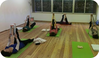 ★用意するもの:ゆったりした服装 (ストレッチジーンズなど不可)、ヨガマット or 敷物用バスタオル、1mくらいの細長いタオル、5本指ソックス(または裸足で)